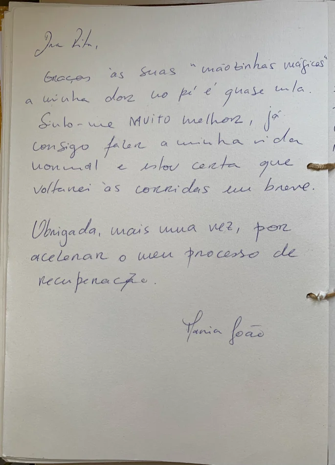 Graças às suas “mãozinhas mágicas” a minha dor no pé é quase nula.